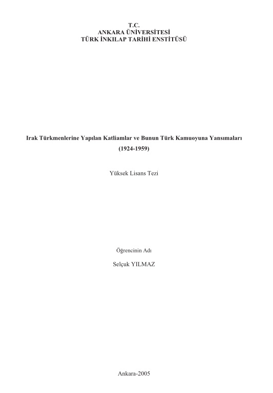 Tarihi geçmişleri Büyük Selçuklu İmparatorluğu’na kadar uzanmakta olan Iraklı Türkmenler, yaşadıkları bölgelerde Musul Meselesi’nin ortaya çıkmasına kadar huzur içinde yaşamışlar, ancak ingilizlerin, Musul’un Irak’a dahil edilmesi yönündeki yoğun çabalarının başlamasından itibaren, huzursuz bir yaşam sürdürmüşlerdir. Ülkelerine ve tarihlerine sıkı sıkıya bağlı olan Türkmenler, Musul bölgesinin Türkiye’den ayrılmasına tahammül edememiş ve ingilizlere karşı çeşitli mücadelelere girişmişlerdir. Bu mücadelelerin daha başlangıcında, ingilizler karşılık vermekte gecikmemişler ve Türkmenler 1924 yılında ingilizler tarafından yapılan bir katliama maruz kalmışlardır. Irak’ta okuma-yazma oranı en yüksek topluluk olan Türkmenler, Musul’un Irak’a dahil edilmesinden sonra Irak yönetimiyle hiç anlaşamamış ve çözümü kendi içine çekilmekte bulmuşlardır. Bu kabuğa çekilme politikası, Türkmenleri bir müddet rahatlatmış olsa da, 1946 yılında kendilerine yönelik planlanan katliamdan habersiz bırakmıştır. Türkmenlere yönelik yapılan en büyük ve uluslararası boyutlu olan katliam, 1959 Kerkük Katliamı’dır. Kerkük Katliamı, dönemin küresel güçlerinin hegemonyası altıdaki komünistlerin ve Kürtlerin ülke kurma sevdasının diyetini Türkmenlerin ödemesi şeklinde özetlenebilir. Irak’ta yaşayan Türkmenler, çeşitli grupların farklı amaçlarının odak noktasında, üzerinde oyunlar oynanabilecek bir topluluktan öteye geçememiştir. Türkmenler kendilerine yönelik yapılan katliamda, ağır şiddete maruz kalmışlar ve manevi olarak yıkılmışlardır. Katliamların sonunda Türkmenlerden bir çok kişi ölmüş ve yaralanmıştır. Türkmenler, kendilerine yönelik yapılan bu katliamları hiç unutmamışlar ve yaşananları her sene anmış ve bu olayların bir kez daha yaşanmaması için geleceğe dair bilinçli ve kararı olmaları gerektiği konusunda hem fikir olmuşlardır.
