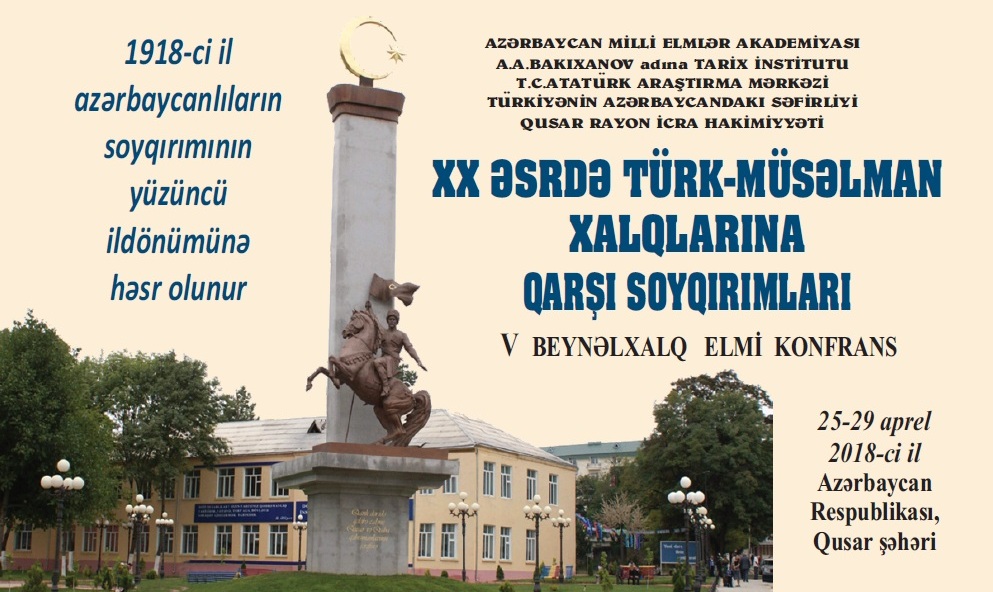 Prezident İlham Əliyevin “1918-ci il azərbaycanlıların soyqırımının 100 illiyi haqqında” Sərəncamına uyğun olaraq, aprelin 26-27-də Qusar şəhərində “XX əsrdə türk-müsəlman xalqlarına qarşı soyqırımları” mövzusunda V Beynəlxalq elmi konfrans keçiriləcək.